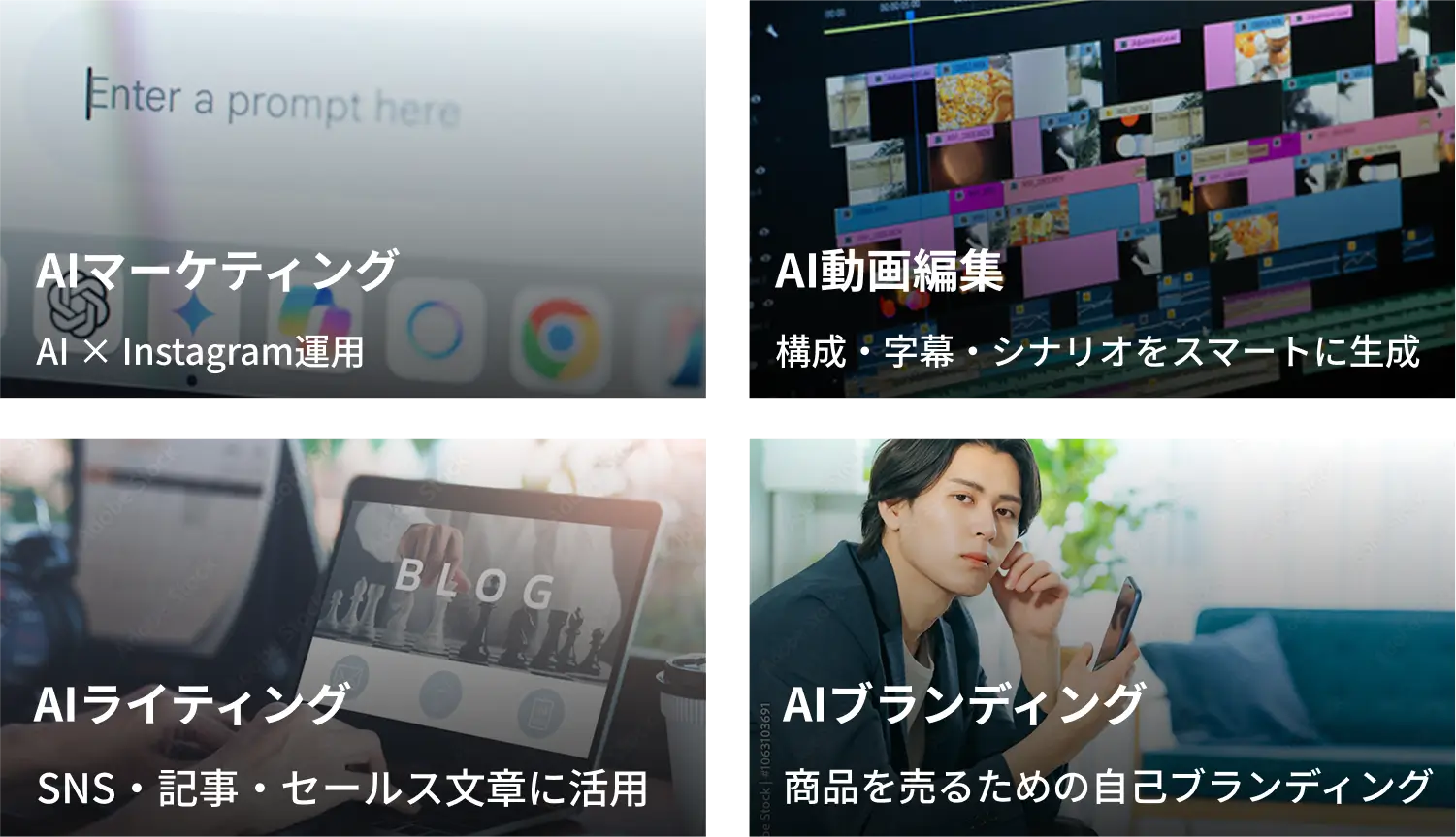 ライティングや動画編集の基礎スキルを身につけることができ、その上AI活用が可能になるため一気にステップアップが見込めます。